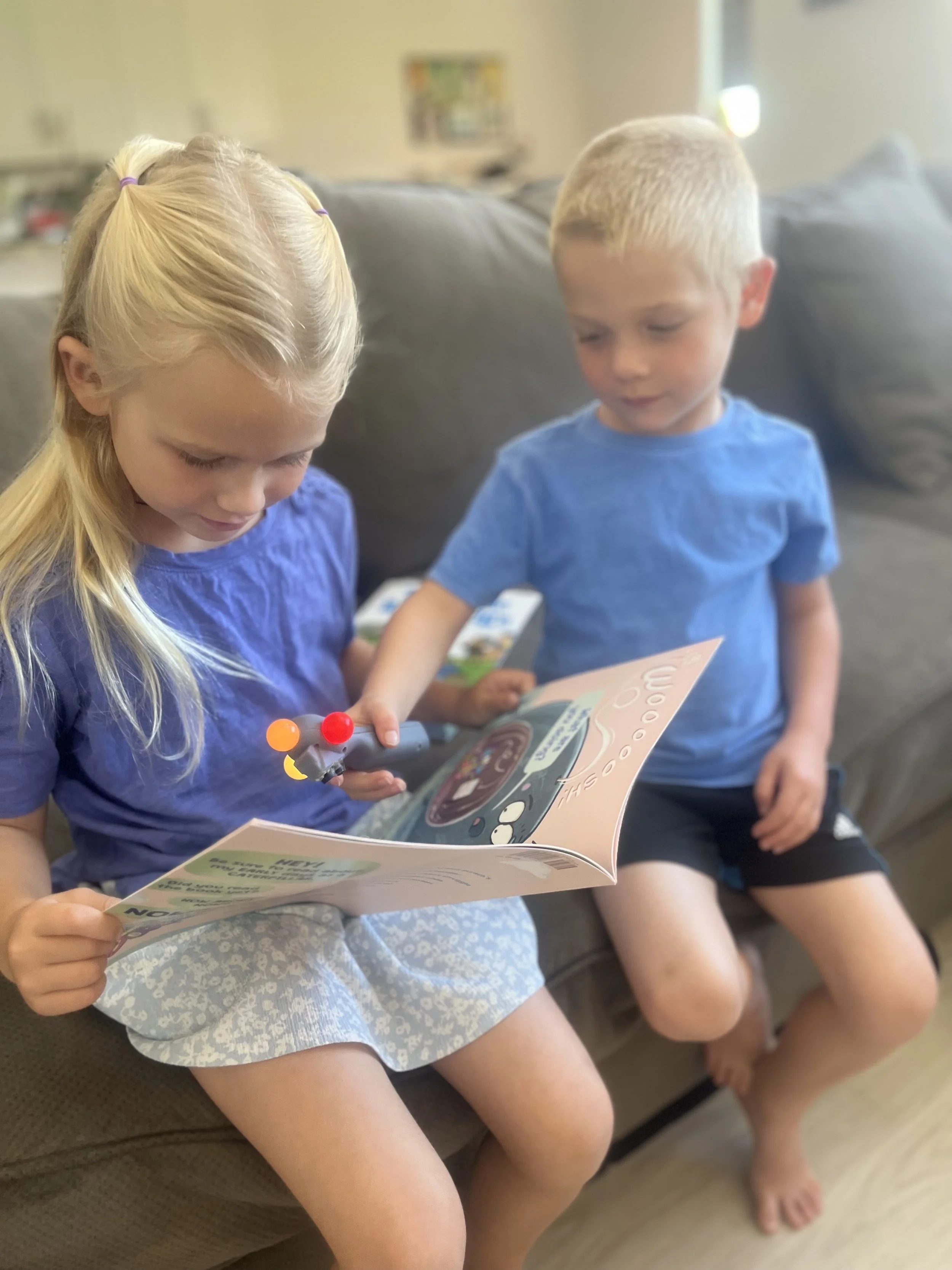 Beyond our science-backed learning system, what distinguishes us from other reading programs is our access to novel edtech product(s) that can be customized to work with any printed book, including those that may already be in your home or local elementary school. Currently, we utilize the Kibeam Wand created by Jim Marggraff, the inventor of the award-winning LeapPad®.
